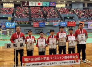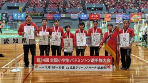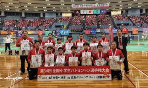 2025(令和7)年12月19日(金)から23日(火)に行われています、第34回全国小学生バドミントン選手権大会において、女子団体で愛知県が優勝しました。男子団体は第3位です。おめでとうございます!