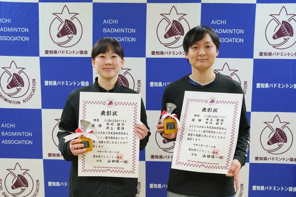 35歳以上混合複優勝 井上 聖悟・市川 新子(スペースシャトル・Cuckoo)