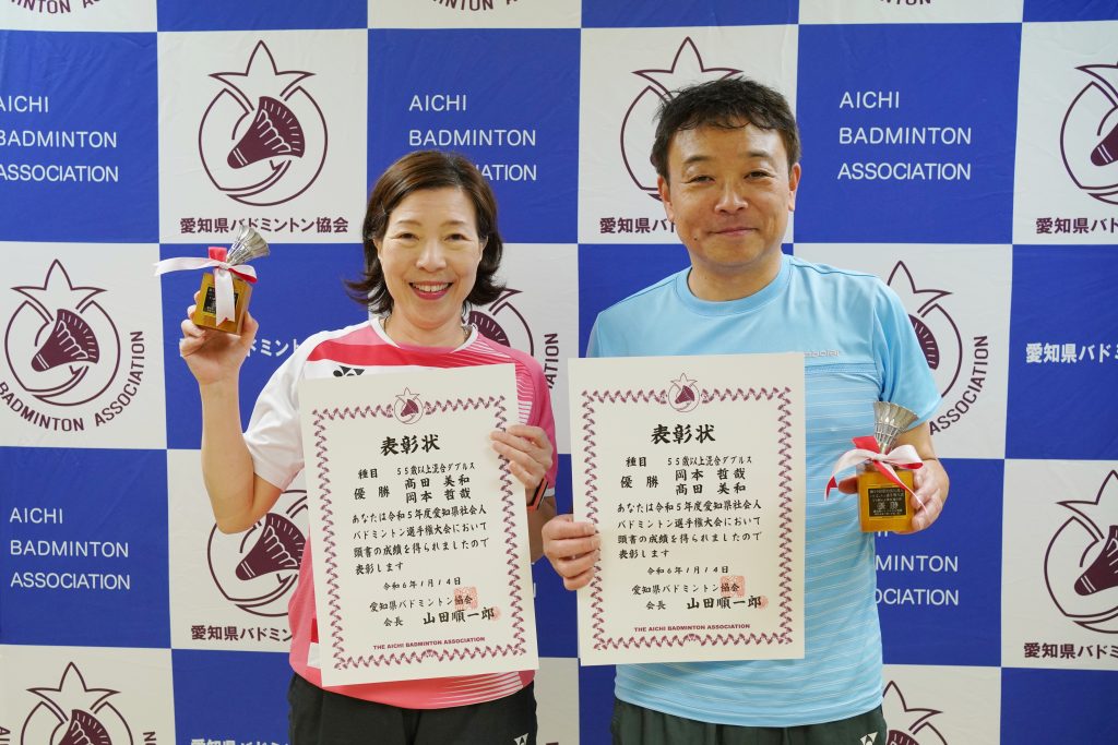 55歳以上混合複優勝 岡本 哲哉・髙田 美和(FLIGHT・三好)