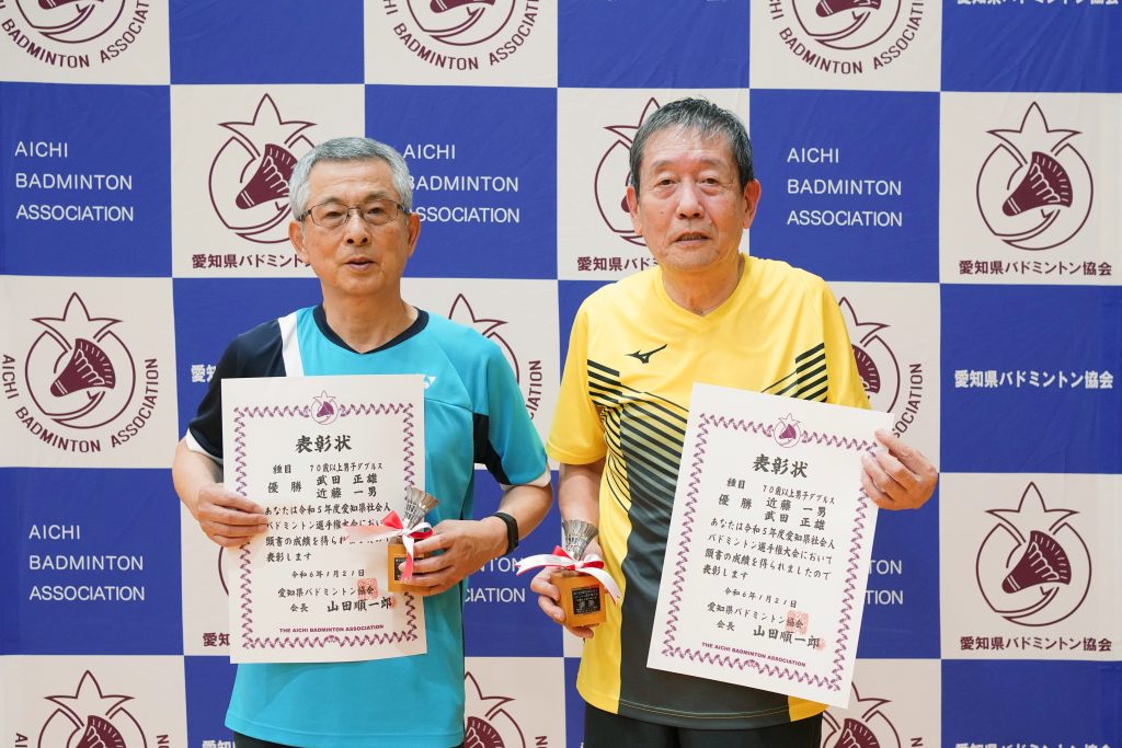 70歳以上男子複優勝 武田 正雄・近藤 一男(実業団連盟・岩倉パラレル)