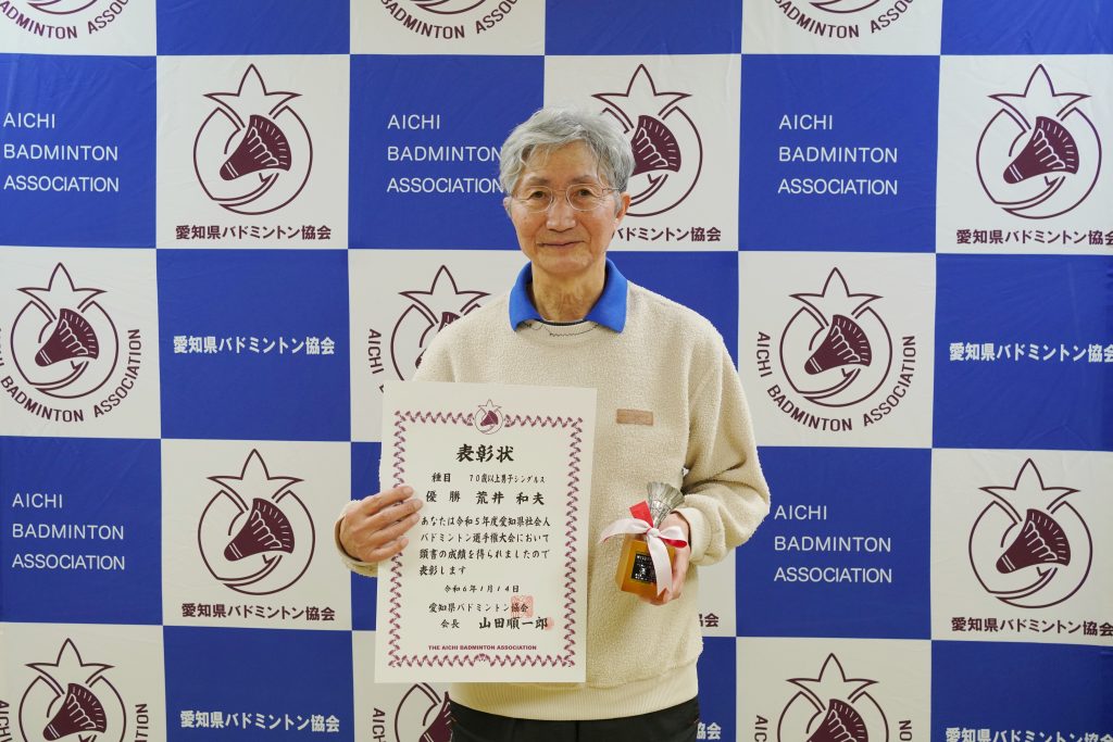 70歳以上男子単優勝 荒井 和夫(桜井BC)