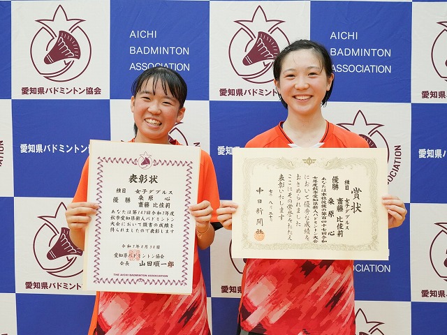 女子複優勝 桑原心・齋藤比佳莉(星城高)